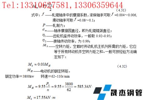 电机所需力矩除了轧制力矩外,还有摩擦力矩,空转力矩,动力矩。这些力矩的计算方法与一般纵轧相同。