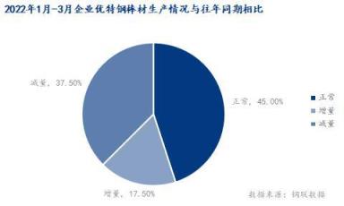 1、2022年1-3月的优特钢棒材生产情况与往年同期相比近一半处于正常水平,有37%的无缝钢管厂产量不及去年同期。