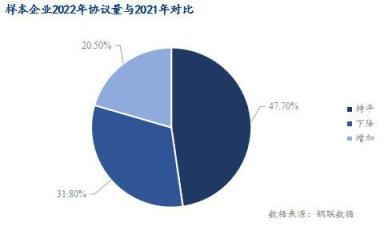 根据样本调研数据显示,与2021年相比协议量无变化的商家占样本总量的47.7%;减少协议量的商家占样本总量的31.8%;样本中仅20.5%的商家选择增加协议量。我网了解到,协议量变化的原因有以下几点:一、政策影响下无缝钢管厂排产受阻,交货资源量缩小;二、商家对市场行情博弈处于疲倦状态,选择谨慎操作;三、部分商家考虑补充代理厂家,综合交货模式、交货量、结算模式等多方因素下考虑增加合作机会,这也是上图调研中显示少数商家增加协议量的部分原因。