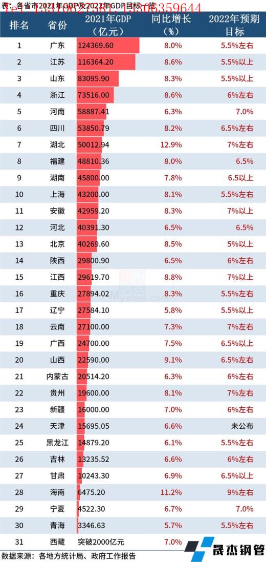 截至1月26日,全国31省份已悉数公布2021年全年GDP数据。其中,GDP排名前3位的省份分别是广东、江苏、山东。湖北GDP增速第一,达到12.9%。此外,除河南、河北、宁夏、西藏、天津以外,其他26个省份均下调2022年GDP增长目标。具体如下: