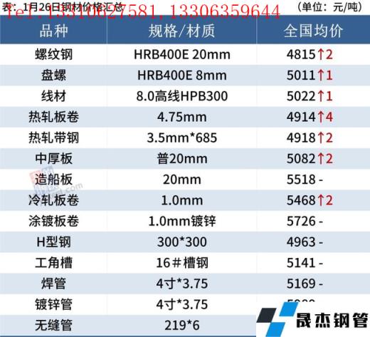 1月26日,国内钢材市场小幅上涨为主,唐山钢坯出厂价格稳报4480元/吨。成交方面,工程项目大多进入到收尾阶段,新一轮降温雨水天气来临,成交整体继续缩量。