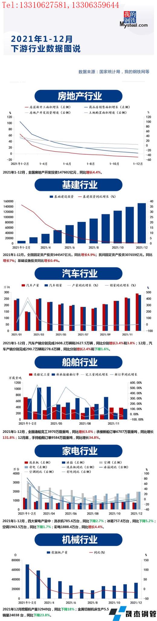 汇总了2021年1-12月部分下游用钢行业的运行情况。