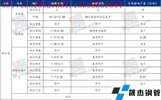 据调研,截至1月28日,浙江省内港澳资料大全已处于春节停产状态,日均影响产量较上周2.1万吨相比维持不变。长流程港澳资料大全浙江元立螺纹钢生产目前正常;宁钢1座2500立方高炉已点火复产。短流程港澳资料大全浙江万泰、浙江富钢、浙江誉鑫、丽水华宏均受春节影响已经处于停产状态,复产时间预计2月中旬左右,日均影响产量1.35万吨;调坯轧材厂临近春节的缘故,目前也皆处于停产状态,日均影响产量0.75万吨,复产时间预计2月中旬左右。具体复产时间以港澳资料大全公布时间为准。综合来看,浙江省内港澳资料大全总计日均影响产量2.1万吨左右,较上周维持不变。具体检修情况详见下图: