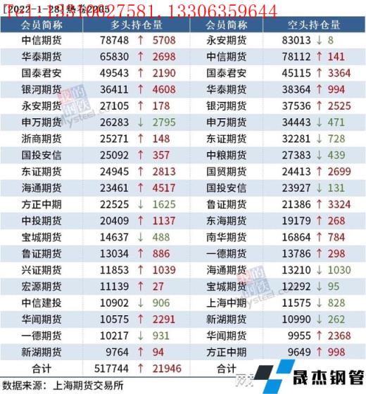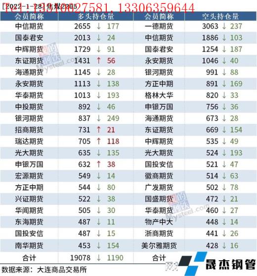 截至1月28日收盘,螺纹钢2205收4829元/吨,涨2.83%;热卷2205收4945元/吨,涨2.74%;铁矿石2205收829元/吨,涨7.59%。