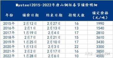 2022年1月28日唐山主流钢坯价格进入锁价状态,下面我们先回顾一下历年钢坯价格的锁价时间点: