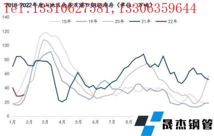 图-2 2018-2022年唐山地区仓库及港口钢坯库存