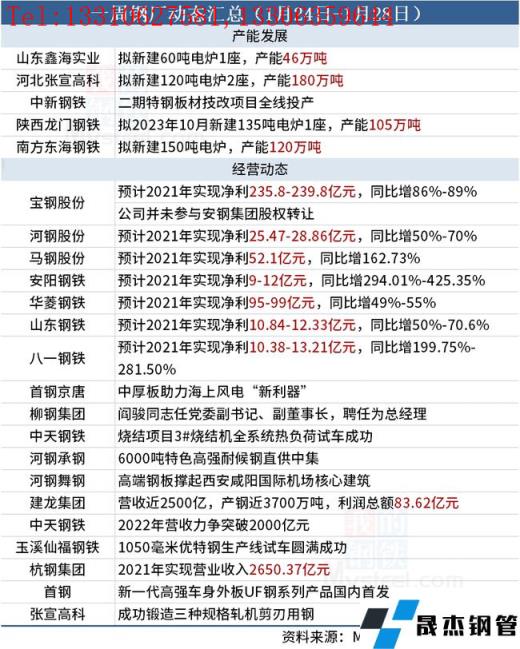 据不完全统计,本周(1月24日-1月28日)有4家无缝厚壁钢管厂家产能置换方案,具体如下: