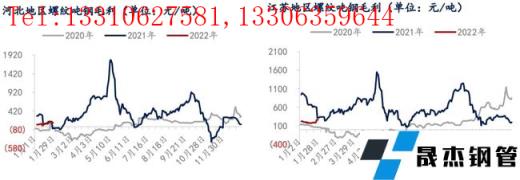 无缝厚壁钢管厂家利润方面,截至1月28日,调研江苏螺纹吨钢毛利在260元/吨附近,河北螺纹吨钢毛利在100元/吨附近,月内吨钢毛利呈现先降后升趋势,截至当前两地区螺纹吨钢毛利略高于上月同期水平。随着春节假期的临近,下游需求减弱,原料端铁矿石港口库存开始降库,无缝厚壁钢管厂家节前补库规模不断扩大,导致原料成本上升较为明显,上半月无缝厚壁钢管厂家吨钢毛利出现回落;但下半月经济数据发布、成材冬储略超预期,成材生产商看好节后需求,价格坚挺,吨钢毛利回升明显。