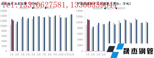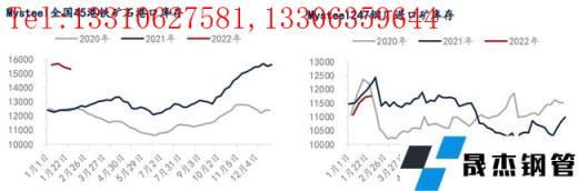 无缝厚壁钢管厂家库存:一月无缝厚壁钢管厂家节前补库火热,长协次序发货、港口现货采购规模扩大,最终无缝厚壁钢管厂家总库存环比上月底增775.86万吨至11757.57万吨,当前总库存库消比43.24。此外,国内疫情散点复发,对部分区域无缝厚壁钢管厂家运输造成较大困扰,为避免影响加大,无缝厚壁钢管厂家超前提货,因此本月度内无缝厚壁钢管厂家厂内库存也有358万吨的增量。