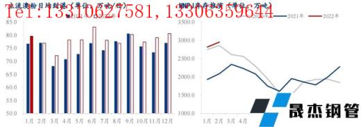 铁矿石疏港:在无缝厚壁钢管厂家复产和节前补库的支撑下,无缝厚壁钢管厂家积极往厂内提货,1月疏港大幅增加。截至1月28日,预计统计中国45港1月疏港量9940万吨,日均疏港环比增加33.8万吨/天至320.6万吨/天,增幅11.2%。本月疏港增量主要集中在华北和华东地区,从1月28日的最新数据来看,华北地区日均疏港已经较上月底增加18万吨/天,华东地区较上月底增加6万吨/天。下月来看,一方面春节期间无缝厚壁钢管厂家提货下降,另一方面限产加严后抑制部分疏港,整体疏港将会出现明显减量。