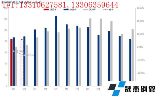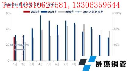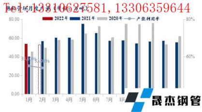 2、2022年2月管坯无缝厚壁钢管厂家计划排产83.5万吨,较1月份实际产量减少1.1万吨,2月份计划产能利用率为53.98%,较1月实际产能利用率减少0.71%;