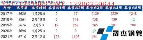 小编汇总近5年春节后四周彩涂板卷均价变化情况,以供参考。