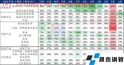 分阶段来看,2021年3月-7月,全球疫情出现阶段性缓解,防疫物资出口增速明显下滑,在欧美国家持续量化宽松下,箱包、服装、玩具、家居产品等消费品出口维持较高增速。同时,伴随海外复工复产,机电产品、零配件等中间品较快复苏;2021年8月-12月,受疫情反复影响,防疫物资出口逐步恢复增长,家居相关消费品出现明显下滑,纺服玩具类消费品、以及部分中间品(集成电路与工程机械)维持强劲出口。