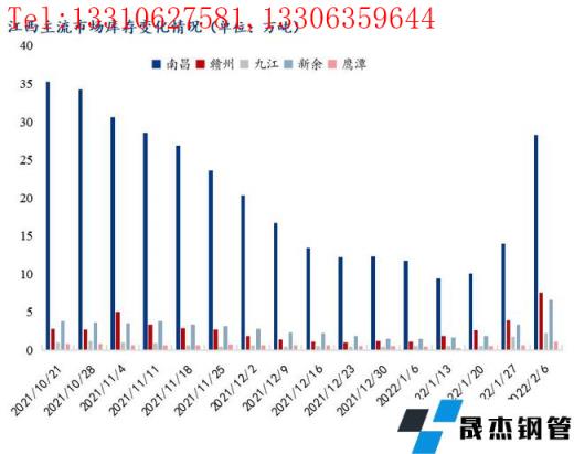 从本周各主流市场库存走势来看,春节期间江西各市场库存均有明显增量。一方面,1月底江西省主流无缝厚壁钢管厂家检修无缝厚壁钢管厂家基本复产,无缝厚壁钢管厂家正常发货,另一方面,春节放假,省内多数工地基本停工,终端采购需求基本停滞,资源快速增加。