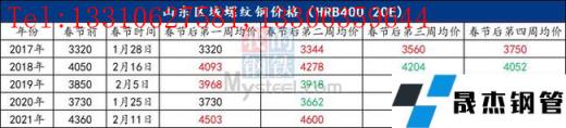 附:近五年山东建筑厚壁无缝钢管春节均价走势: