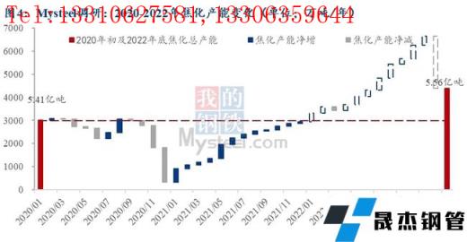 截至2021年1月21日,据调研统计,到2022年底总焦化产能预计将达到5.54亿吨/年,将高于2021年底的5.4亿吨/年,年增幅2.9%。