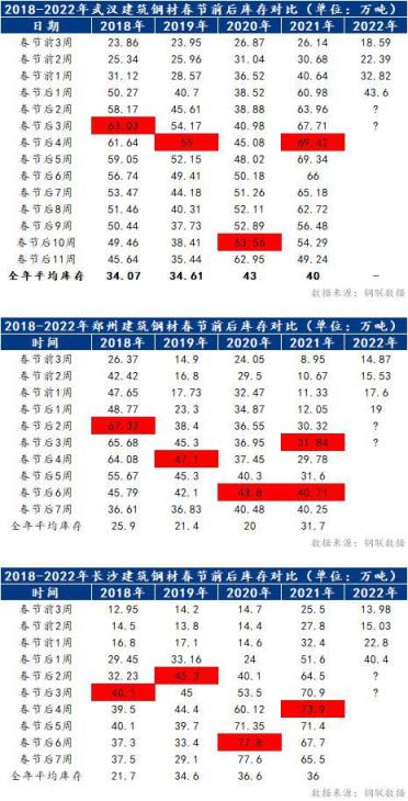 小编汇总近5年春节后7周中南区域建筑厚壁无缝钢管库存变化及库存峰值时间节点。具体情况如下表所示: