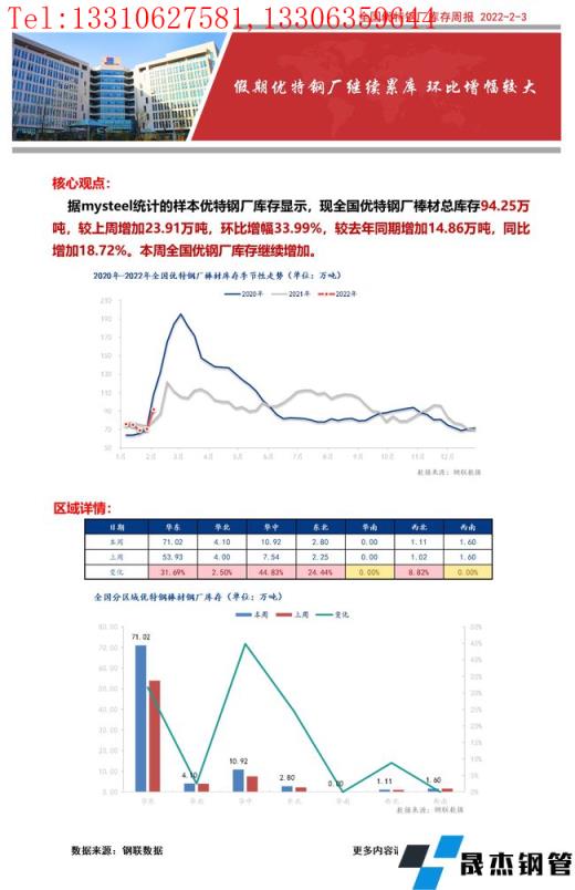 核心观点:据mysteel统计的样本优特无缝厚壁钢管厂家库存显示,现全国优特无缝厚壁钢管厂家棒材总库存94.25万吨,较上周增加23.91万吨,环比增幅33.99%,较去年同期增加14.86万吨,同比增加18.72%。本周全国优无缝厚壁钢管厂家库存继续增加。