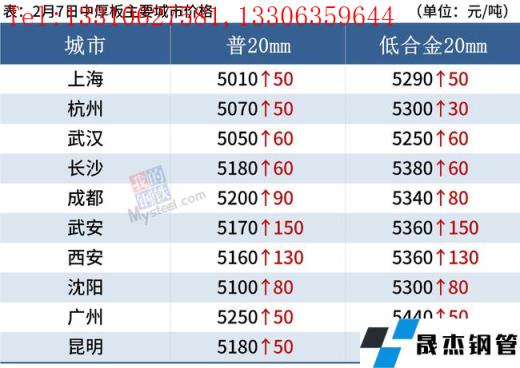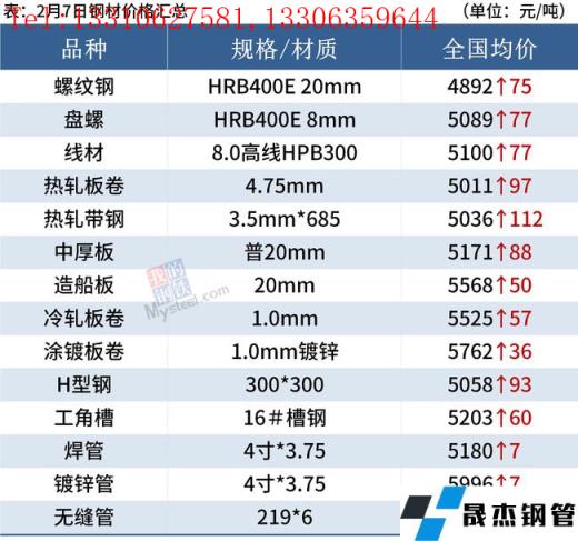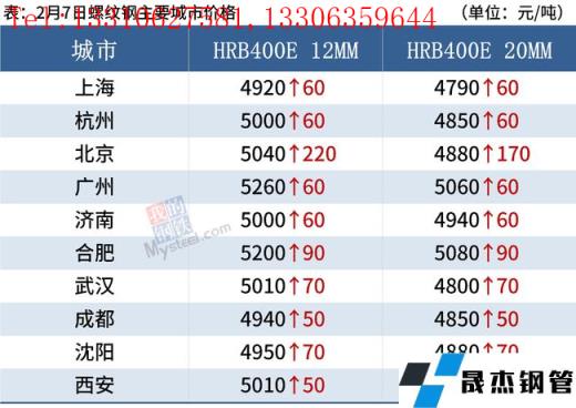 建筑厚壁无缝钢管:2月7日,全国31个主要城市20mm三级抗震螺纹钢均价4892元/吨,较节前(1月30日)上涨75元/吨。短期来看,由于需求未真正启动,现货市场上涨主要还是情绪面推动。短期需要关注消费恢复情况,若市场存在高价格低需求,则需谨慎贸易商集中兑现利润。预计8日国内建筑厚壁无缝钢管价格或将继续趋强运行。