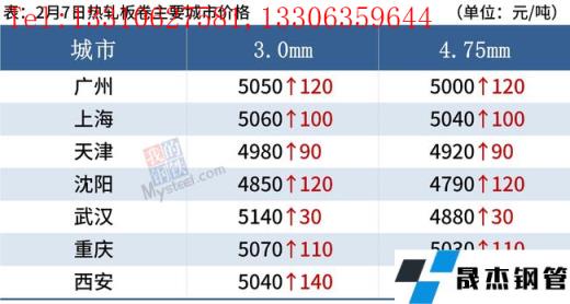 中厚板:2月7日,全国24个主要城市20mm普板均价5171元/吨,较节前(1月30日)上涨88元/吨。今日市场情况来看,大多数商家并没有开工,市场报价稀少,基本无成交。钢坯大幅上涨,中板现货涨价主要是以补涨叠加开始后预期为主,其中华北区域上涨积极,无缝厚壁钢管厂家主动抬升价格,引领现货上行,空涨现象较为明显。需求来看,下游企业正常开工多在初十左右,故后两日成交不会有明显恢复。综合预计,8日中厚板价格继续上涨。
