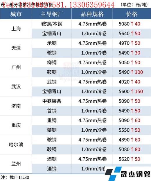 ◎乐从:8日早盘热卷市场价格上涨50,4.75以上普柳燕5050-5060,2.75普5090-5240锰5240-5260。(单位:元/吨)