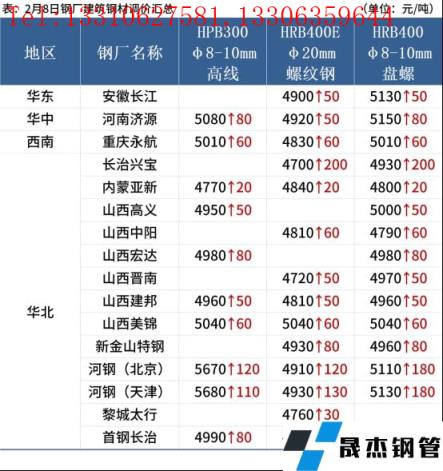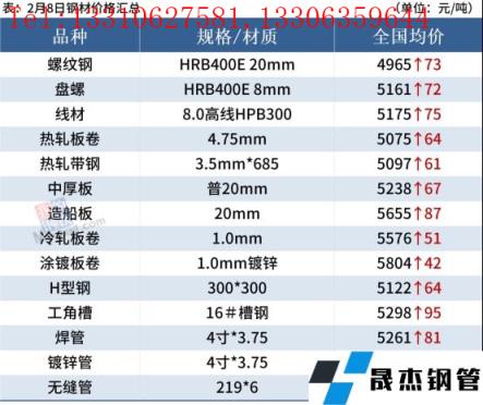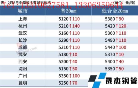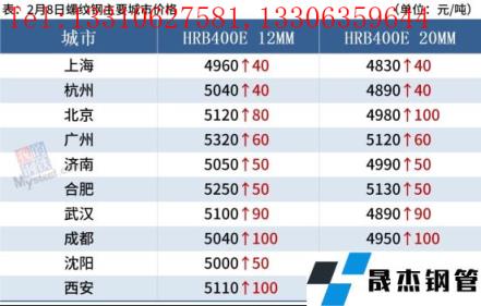 建筑厚壁无缝钢管:2月8日,全国31个主要城市20mm三级抗震螺纹钢均价4965元/吨,较上个交易日上涨73元/吨。具体来看,早盘期螺震荡上行,多数无缝厚壁钢管厂家继续推涨,上午国内建筑厚壁无缝钢管价格大幅上涨。从成交方面来看,节后第二日,贸易商陆续返市开工,虽然报价增加,但整体市场询价电话寥寥,成交低迷。短期来看,由于需求仍未启动,当前现货上涨仍然以无缝厚壁钢管厂家推涨为主,贸易商跟涨积极性高。短期在情绪面驱动下,预计9日国内建筑厚壁无缝钢管价格或将继续趋强为主。