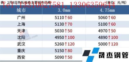 2月8日,国内厚壁无缝钢管市场价格继续上涨,唐山普方坯出厂价上涨70报4670元/吨。今日黑色期货强势上涨,节后第二日现货市场还未完全恢复,市场成交有限。