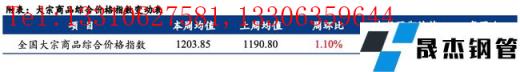全国大宗商品综合价格指数均值为1203.85,环比上升,增幅1.10%(前值2.53%);同比上升,增幅18.17%(前值16.20%)。