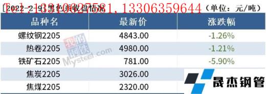 截至2月9日收盘,螺纹钢2205收4843元/吨,跌1.26%;热卷2205收4980元/吨,跌1.21%;铁矿石2205收781元/吨,跌5.9%。