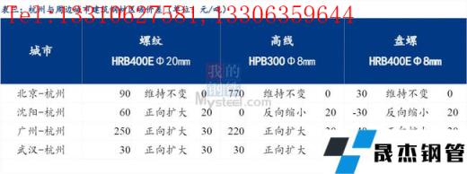 从区域价差来看,今日东北、华南、华中地区价格涨幅均高于杭州市场价格涨幅,区域价差正向扩大;杭州市场与华北地区建筑厚壁无缝钢管价差维持不变。