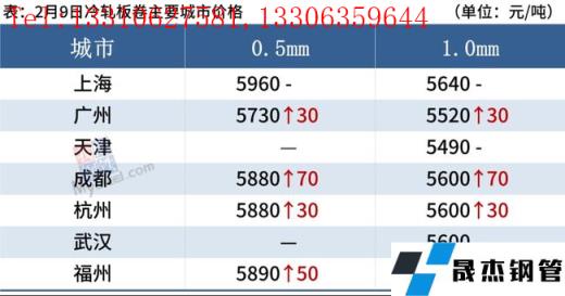 冷轧板卷:2月9日,全国24个主要城市1.0mm冷卷均价5594元/吨,较上个交易日上涨18元/吨。节后市场贸易商涨价意愿较强,连续两日上涨之后,9日仅部分地区继续补涨。据贸易商反馈,下游企业开工多滞后于贸易商,当下市场询单问价的寥寥无几,价格虽然大幅上行,但有空涨之势。随着黑色系期货全线翻绿,午后部分市场价格开始回落。综上所述,预计10日全国冷轧板卷市场价格或将震荡运行。