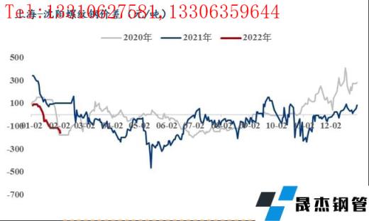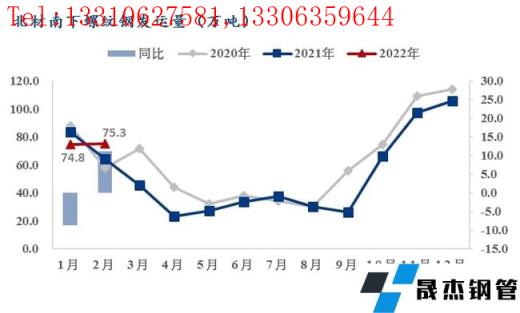 2022年2月东北螺纹南下计划量为75.3万吨,同比增加11.1万吨环比增加0.5万吨,盘线南下计划量52.8万吨,同比增加12.1万吨环比减少12.2万吨;1月东北螺纹南下实发量为74.8万吨,同比减少8.7万吨环比减少30.8万吨,盘线南下实发量65.0万吨,同比减少0.5万吨环比减少13.6万吨。受无缝厚壁钢管厂家1月实际产量较计划减量以及无缝厚壁钢管厂家增加省内投放等因素影响,1月螺纹和盘线的南下实发量较月初计划分别减少19.1万吨和27.9万吨。