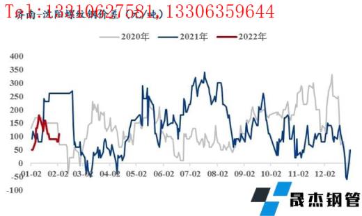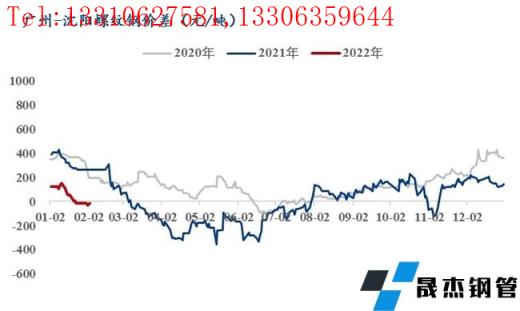 2、节后开市东北地区螺纹价格在京津大幅上涨以及无缝厚壁钢管厂家的集体上调下累计上涨140-160元/吨,涨后价格已经明显高于华东华南地区,从利润角度出发无缝厚壁钢管厂家更倾向于本地化销售;截至2月6日东北螺纹钢库存约70.3万吨较节前增加19.3万吨同比增加3.9万吨,盘线库存约20.8万吨较节前增加6.4万吨同比增加13.7万吨,从省份来看辽宁地区的库存压力整体较大,黑吉尚可。同时今年春节时间较早,离需求启动还有近一个月的时间,因此即使在南方价格不具优势的情况下,本地无缝厚壁钢管厂家或继续保持较高南下比例,2月份的实发量或高于计划水平。