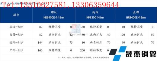 统一单位后,武汉高于长沙82元/吨,南昌低于长沙82元/吨,杭州高于长沙144元/吨,广州高于长沙160元/吨。长沙资源可以流向南昌周边地区。