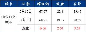 分品种来看,本周山东13个市场建筑厚壁无缝钢管总库存为89.47万吨,周环比增加9.19万吨,涨幅为11.45%。其中螺纹钢库存67.07万吨,周环比增加6.56万吨;线盘22.4万吨,周环比增加2.63万吨。