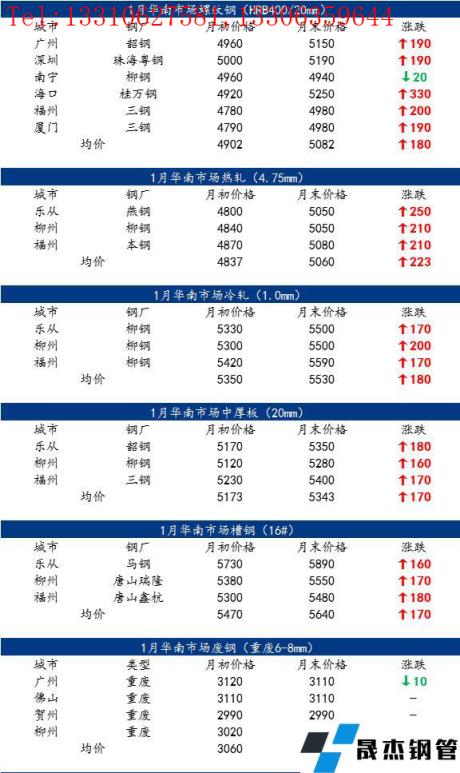 表1:1月华南各品种价格涨跌一览表 (单位:元/吨)