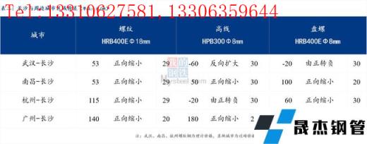 统一单位后,武汉高于长沙53元/吨,南昌低于长沙53元/吨,杭州高于长沙1115元/吨,广州高于长沙14元/吨。长沙资源可以流向南昌。
