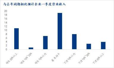 调研样本企业中,与去年同期相比预计企业一季度营业收入有增长的占比为35.85%;基本持平的占比为35.85%;与去年同期相比预计企业一季度营业收入有下滑的占比为28.3%。
