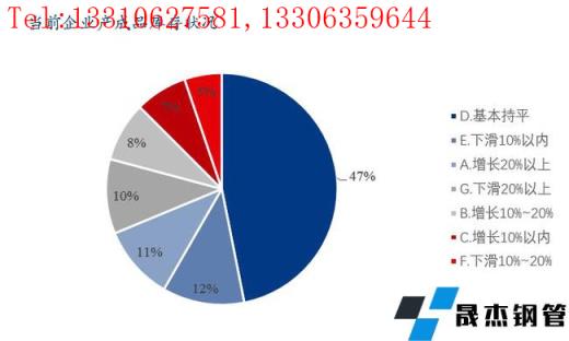3、订单方面稳中有涨。与去年同期相比,企业的订单有增长的占比20%,其中增长10%以内的占比7%,增长10%以上的占比13%;基本持平的占比62%;当前所在企业的订单状况有所下滑的占比18%。