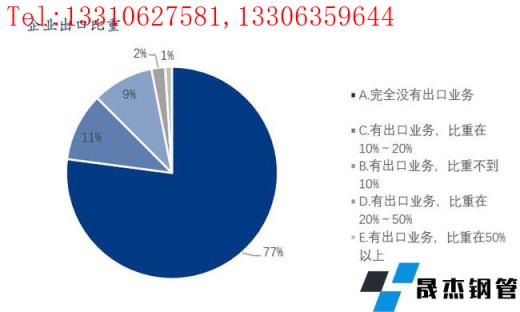 本次调研样本企业中,77%完全没有出口业务,出口业务比重在20%以内的占比为20%,出口业务比重在20%以上的占比为3%。