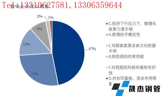 本次调研样本企业认为影响企业信心的因素如下表:47%认为经济下行压力大,稳增长政策力度不够;27%认为疫情不确定性;15%认为对国家政策总体方向把握不明;8%认为是供给端的约束持续,另有3%担忧外部环境和对重大问题认识不清。