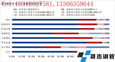 分类型来看,今年生产制造业的员工放假停工占比依旧最低的,贸易流通、终端消费企业中所有员工都停工的情况占比分别到达77.39%、70.77%,居行业第一、第二,而工程建筑类企业所有员工都放假停工的比例则降低至53.71%。