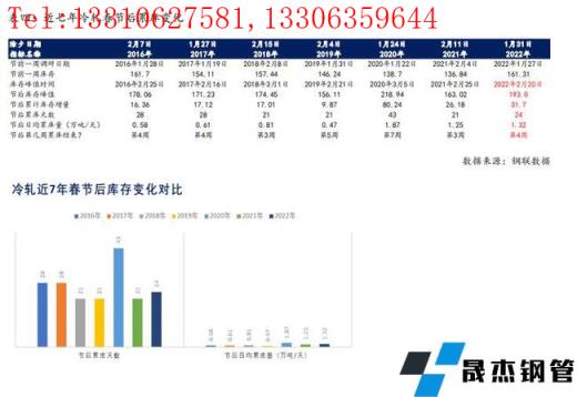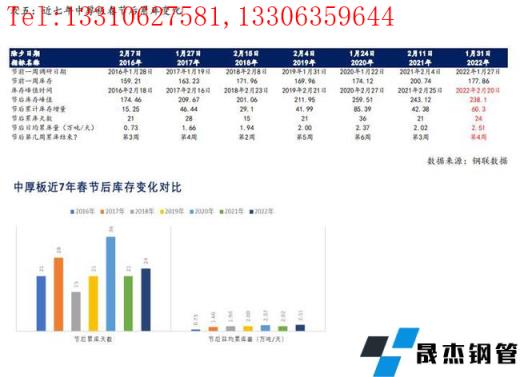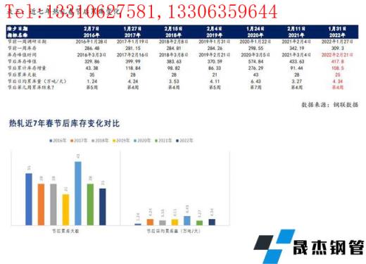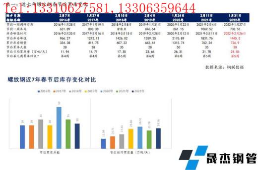 与螺纹钢原因相对一致,2020年春节后累库天数长达43天,节后第7周首次出现降库趋势。2016年至2019年,以及2021年,线材春节后累库天数基本维持在21-35天,并在节后第3-5周首次出现降库趋势。依据建筑厚壁无缝钢管品种属性基本相似的惯例来看,2022年线材节后预计累库天数也将达到30天左右,节后日均累库9.72万吨/天,同比2021年高24%左右,节后第4周达到峰值,库存峰值同比低4%左右。