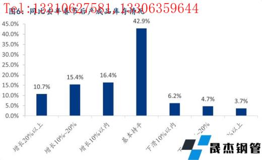 据调研,42.9%的样本企业产成品库存情况与去年春节后基本持平,42.5%的样本企业产成品库存较去年有增加,14.6%的样本企业产成品库存同比下降。