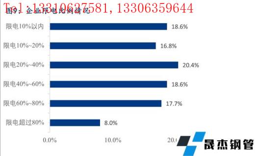 4、对于限电方面的调研结果显示,22.0%的样本企业明确表示目前存在限电的情况,限电的比例较为平均,35.4%的样本企业限电比例在20%以内,38.9%的样本企业限电比例在20%-60%,25.7%的样本企业限电比例在60%以上。
