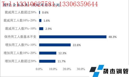 6、目前企业在岗员工人数与实际需求基本匹配的占比为48.0%,35.5%的企业目前在岗员工人数与实际需求相比存在少量的缺口,46.6%的企业在未来一段时间内有增加用工人数的计划,由此可见未来一段时间内行业用工需求依然较大,仅仅只有5.1%的企业未在岗员工人数超过实际需求,预计未来一段时间会有少量的人员裁减计划。