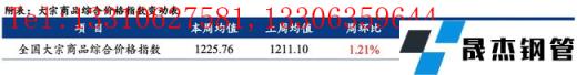 全国大宗商品综合价格指数均值为1225.76,环比上升,增幅1.21%(前值4.28%);同比上升,增幅20.14%(前值19.01%)。