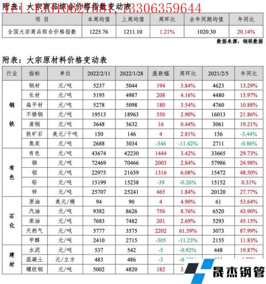 全国大宗商品综合价格指数均值为1225.76,环比上升,增幅1.21%(前值4.28%);同比上升,增幅20.14%(前值19.01%)。