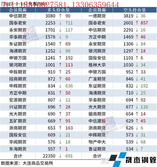 截至2月15日收盘,螺纹钢2205收4728元/吨,跌2.76%;热卷2205收4843元/吨,跌2.69%;铁矿石2205收699元/吨,跌9.98%。