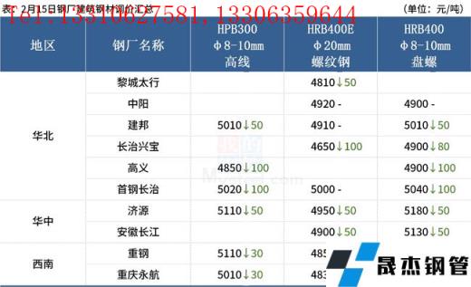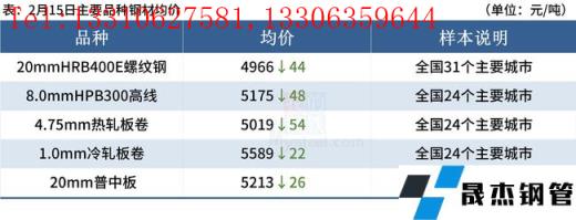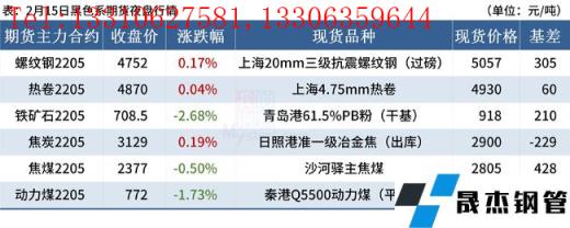 ◎ 2月15日,焦炭市场弱稳运行,唐山个别无缝厚壁钢管厂家焦炭提降200元/吨,主流地区暂无回应,市场多观望为主。